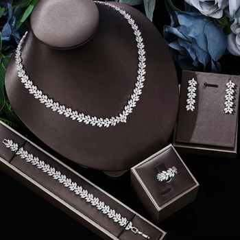 Hibride sang trọng chokers Zirconia 4 cái đồ trang sức Châu Phi thiết lập cho phụ nữ Bridal Wedding Dubai Vòng cổ lớn bông tai Đảng đồ trang sức N-320