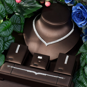 Hibride Đẹp Cubic Zircon Trắng Pha Lê Bridal Wedding Vòng Cổ Bông Tai Đảng Bộ Đồ Trang Sức Cho Phụ Nữ Ăn Mặc Đảng N-1711
