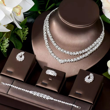 हाइवेदर उच्च गुणवत्ता 4 पीसी हार N-1139 शादी पार्टी सगाई के लिए नवीनतम पत्ती डिजाइन cz दुल्हन शादी के गहने