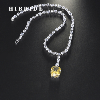 HIBRIDE Luxury Square Shape Yellow Color Pendant Necklace for Women Girls Jewelry Wedding Accessories Party Gifts N-711